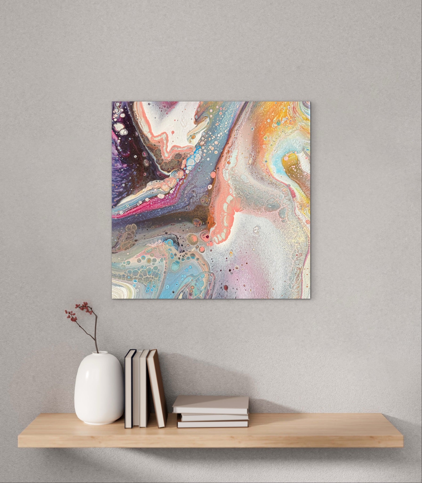 A Smaller Joy is an intimate abstract piece created using the same joyful color palette as a larger companion work—proof that happiness doesn’t always need a big canvas to make itself known.