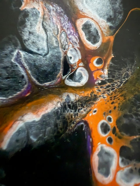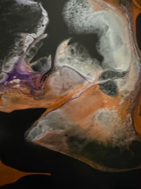 This set carries a grounded, reflective energy — deep charcoal and smoky gray layered with soft movement of copper, pale white, and hints of violet. Each coaster feels like a moment of pause, where emotion settles and strength takes a quieter form.