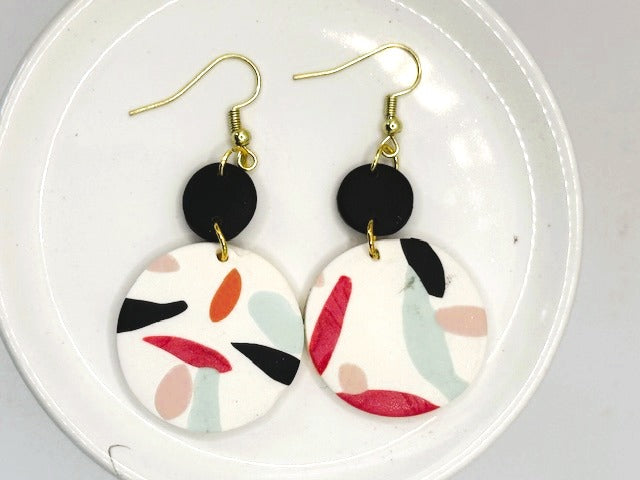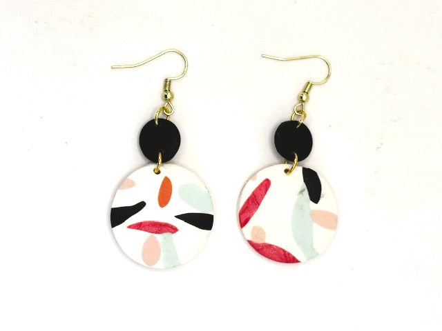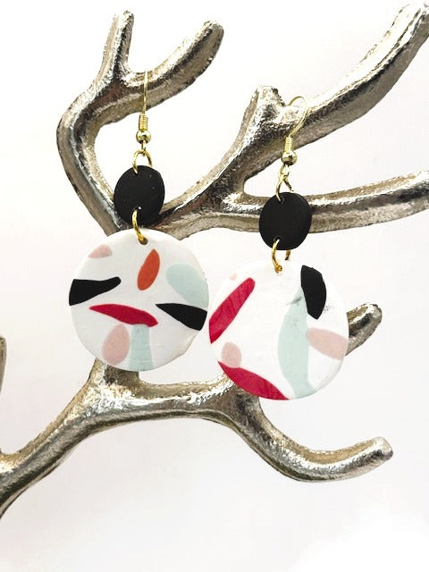 A reminder that beauty doesn't need to be whole to be powerful. Fragments of Joy brings together contrast and color - a grounding black circle anchoring a burst of coral, turquoise, pink, and white. Like joy discovered in pieces, these earrings celebrate the moments that break through the dark and remind us we're still alive, still feeling, still creating.