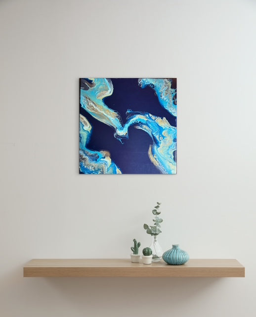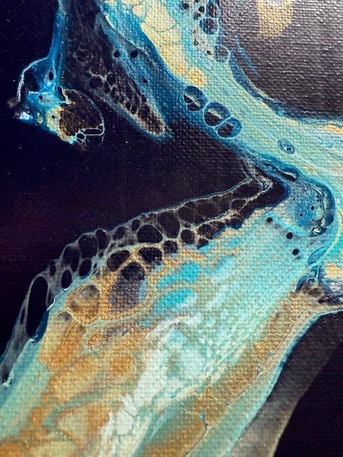 Swirls of gold and turquoise emerge from a midnight sea - a visual reminder that even in the darkest depths, light has a way of finding us. This piece captures the quiet moment when chaos softens and hope begins to rise again. It speaks to recovery, to the fragile strength that come from surviving another day, and to the beauty that forms in the spaces between despair and renewal.Â
